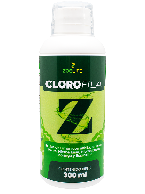 Clorofila Z de Zoe Life es una bebida líquida natural, elaborada con extracto de clorofila vegetal y una poderosa mezcla de superalimentos verdes: alfalfa, espinaca, moringa y espirulina. Su fórmula se complementa con limón y hierbas aromáticas como menta, hierba luisa y hierba buena, que aportan frescura y bienestar digestivo.